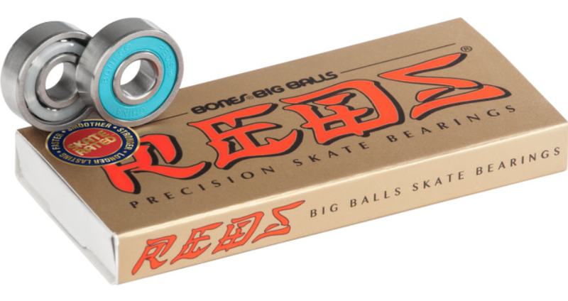 BIG BALLS, the newest member of our REDS family. BIG BALLS are engineered to roll faster and last longer by using 6, 17% larger balls, like our legendary Bones Super Swiss 6 bearings. These larger balls let you roll faster, and keep rolling right through dirt that slows smaller balls down. This makes BIG BALLS a great choice for skaters looking for more speed and longer life in their bearings.